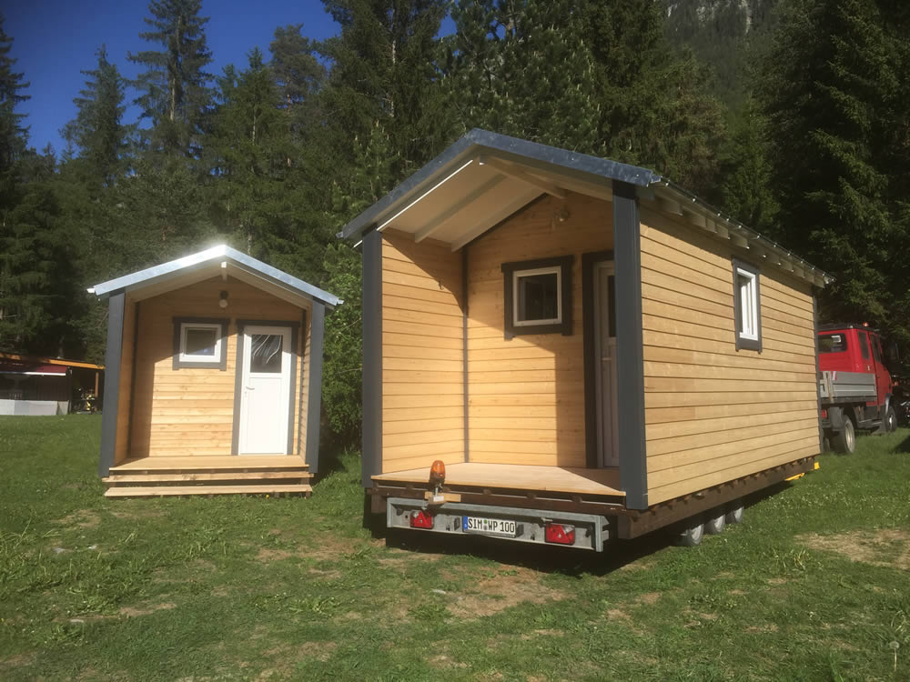Sie überqueren die alte Holzbrücke über den Inn und stehen am Eingangsportal des Camping Sur En.