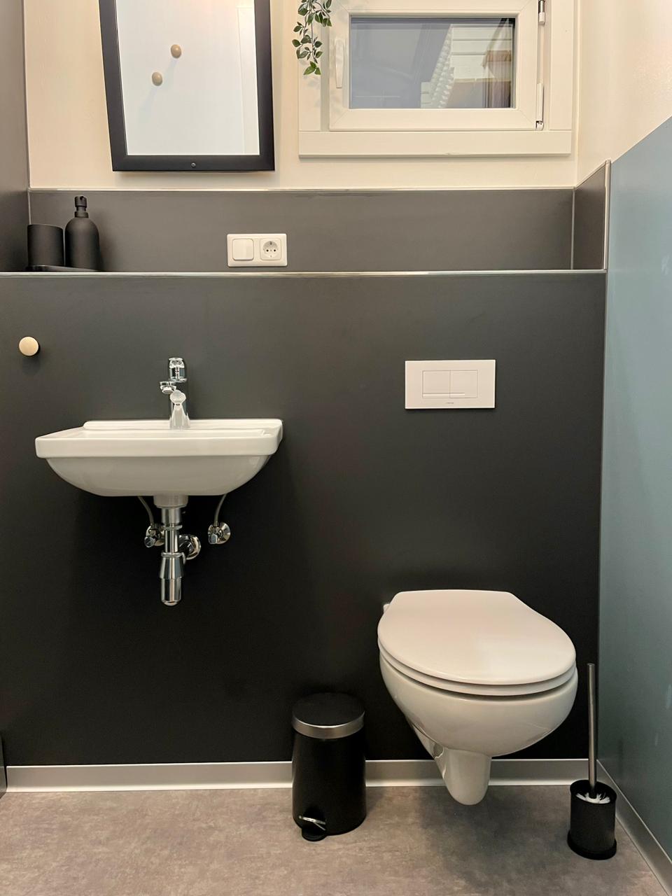 - WC Unisex mit Toilette, Urinal und Waschbecken